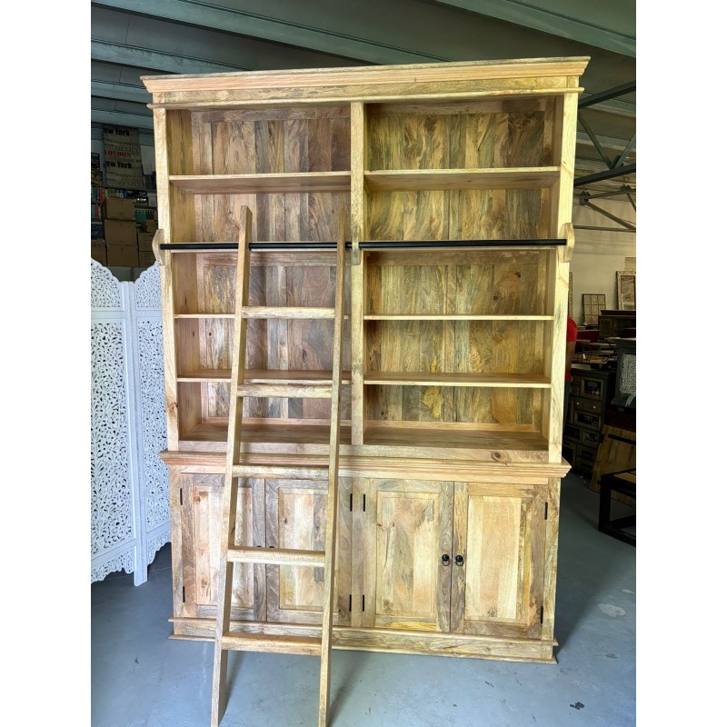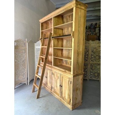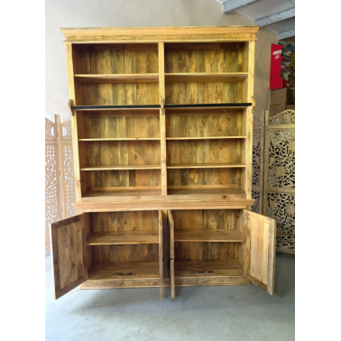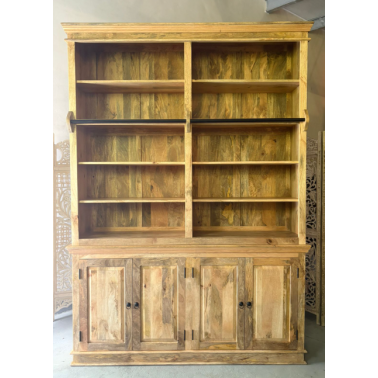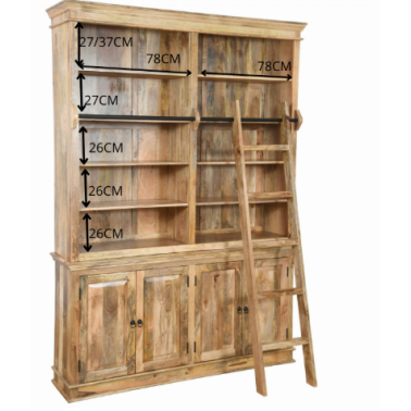 Biblioteka ręcznie wykonana z egzotycznego drewna mangowca. Mebel w naturalnej kolorystyce zachowanej dzięki zastosowaniu odpowiedniego, półmatowego lakieru.