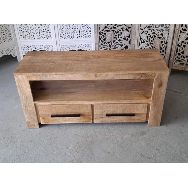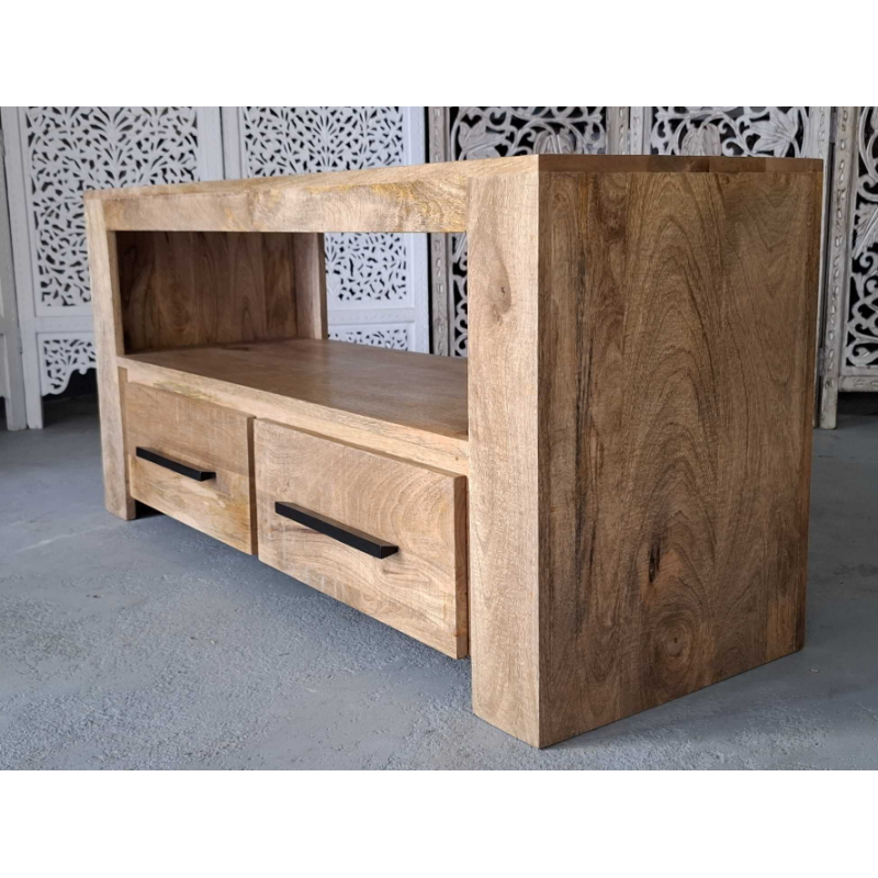 Komoda RTV wykonana z egzotycznego drzewa mango.