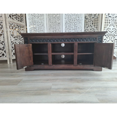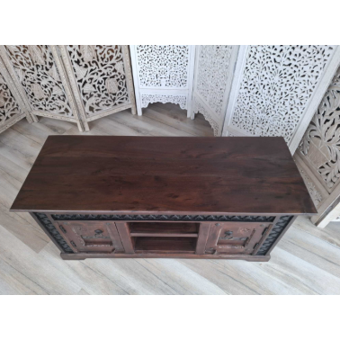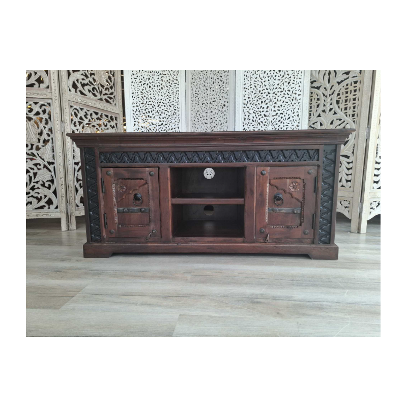 Ta indyjska komoda RTV to nie tylko praktyczne rozwiązanie do przechowywania, ale także artystyczny element, który wzbogaci Twoje wnętrze. Pozwól sobie na podróż do świata egzotycznych inspiracji, wprowadzając do swojego domu mebel, który opowiada historię rzemiosła i tradycji Indii.
