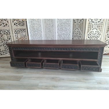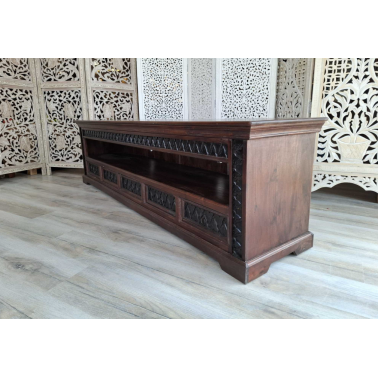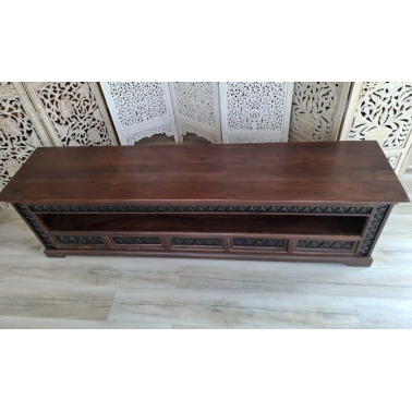 Ta indyjska komoda RTV to nie tylko praktyczne rozwiązanie do przechowywania, ale także artystyczny element, który wzbogaci Twoje wnętrze. Pozwól sobie na podróż do świata egzotycznych inspiracji, wprowadzając do swojego domu mebel, który opowiada historię rzemiosła i tradycji Indii.