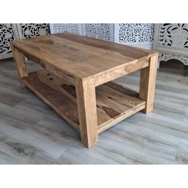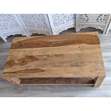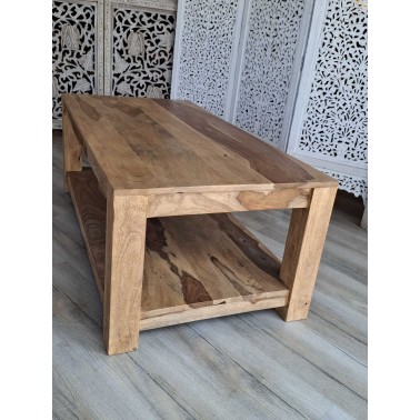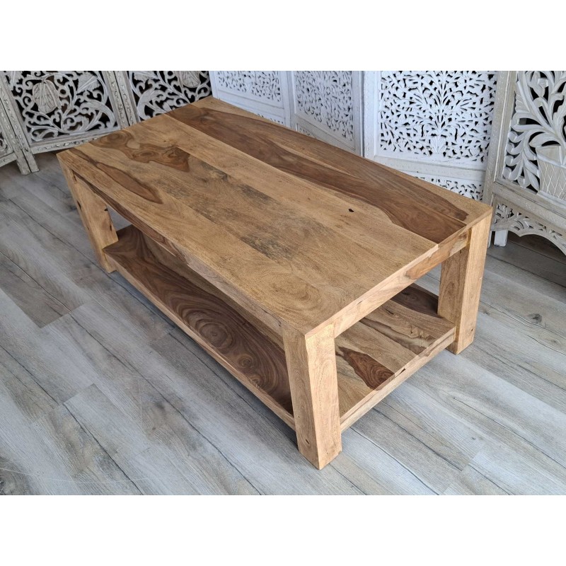 Drewniany stolik kawowy wykonany z egzotycznego drzewa palisandru. Mebel kolonialny w jasnym odcieniu