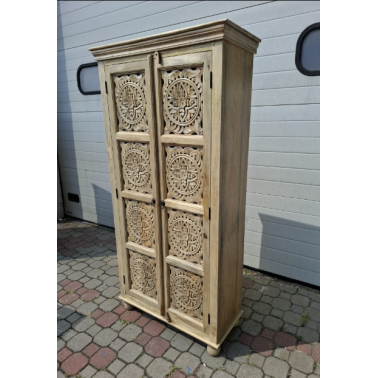 Najważniejszym elementem komody jest rzeźbiony ażurowy front, który dodaje jej unikalnego charakteru. Rzeźbienia w formie ażurów tworzą piękne wzory na frontowej powierzchni, tworząc efektowną dekorację.