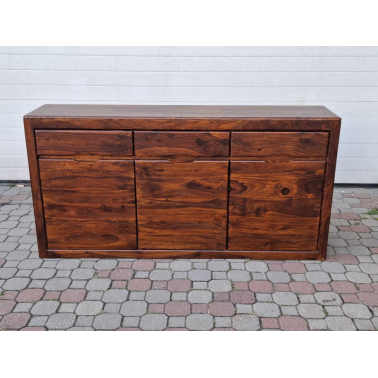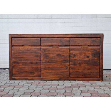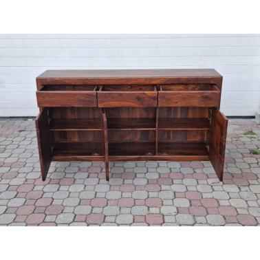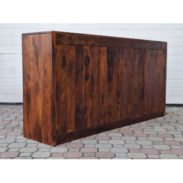 Indyjska komoda kolonialna w kolorze ciemnego, miodowego brązu, wykonana ręcznie z egzotycznego drewna palisandru przez tamtejszych stolarzy. Jest to udane połączenie minimalistycznego, współczesnego wzornictwa z pięknym naturalnym materiałem.
