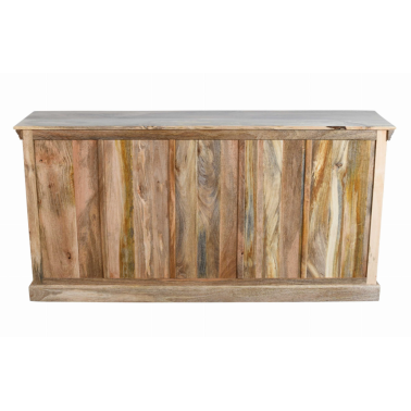 Dwie pojemne szafki ukryte za zdobionymi frontami oferują funkcjonalną przestrzeń do przechowywania, sprawdzając się zarówno w salonie, jadalni, jak i w holu. To mebel, który nie tylko spełnia praktyczną funkcję, ale również stanowi ozdobę samą w sobie – zwłaszcza w przestrzeniach urządzonych w stylu kolonialnym, boho lub rustykalnym.