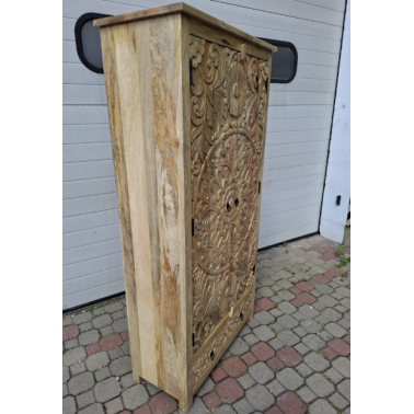 Ta witryna z drewna mango jest doskonałym połączeniem estetyki i funkcjonalności. Pasuje do różnych stylów wnętrz, idealnie sprawdzi się w salonie lub jadalni, pomieści Twoja zastawę obiadową, obrusy, serwety i sztućce.