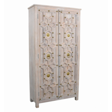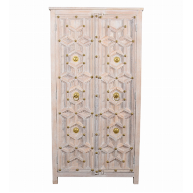 Szafa jest wykonana z trwałego drewna mango, które jest nie tylko wytrzymałe, ale także pięknie się prezentuje. Jasna pastelowa kolorystyka sprawia, że mebel ten jest idealny do wnętrz o subtelnym charakterze, takich jak sypialnia czy salon.