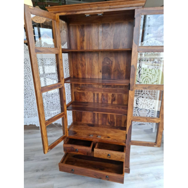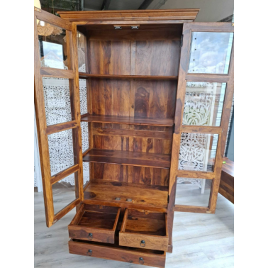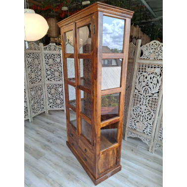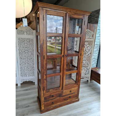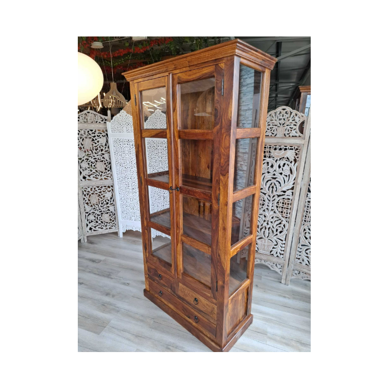 Przeszklona witryna wykonana z 100% drewna sheesham (palisander).Wykonana ręcznie w Indiach.