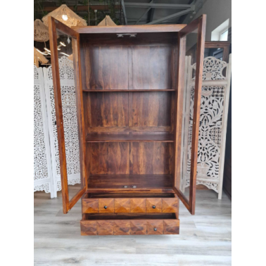 Drewniana witryna wykonana w całości z egzotycznego drewna palisandru.